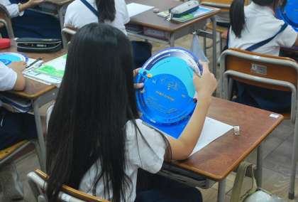 今日は、月の動き早見板を使って学習していました。