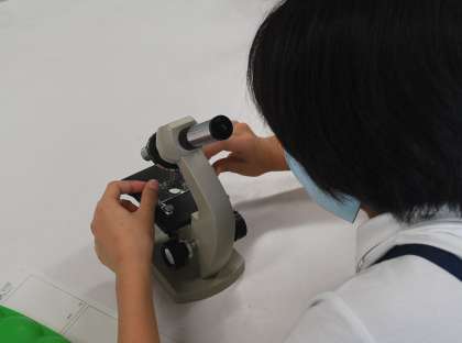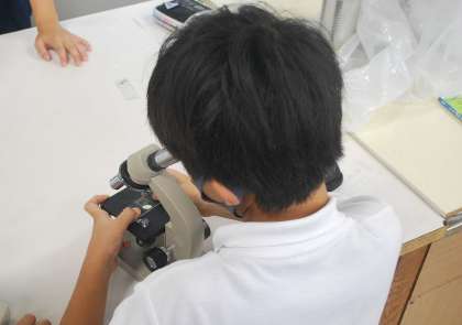 今日の5年生の理科の学習は、アサガオやヒョウタン等の花粉を顕微鏡で観察しました。