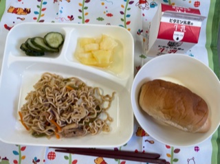 ★パン ★牛乳 ★焼きそば ★きゅうりのしょうがづけ ★パインアップル(缶)