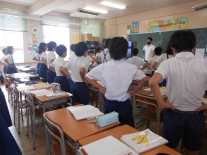 短時間で遊び感覚で取り組めるため、今日は5年生で取り組んでいる学級がありました。先生の指示に合わせて楽しく活動に取り組んでいました。