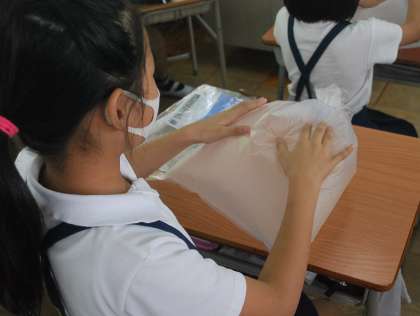 今日は、袋に空気を閉じ込めて感触を確かめる活動をしていました。