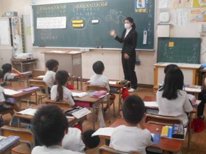 先日のホームページでもお伝えしました通り、現在教育実習生が来て先生になるための勉強中です。今日は、実習のまとめとして授業を行いました。たくさんの先生にも来て頂いて、授業後には色々とアドバイスしてもらっていました。声の大きさ、板書の美しさなど実習生とは思えないほどでした。子どもたちは、1時間目に運動会の練習があり、3時間目の授業でしたが一生懸命お話を聞いてがんばっていました(※学級は1年1組です。)。諏訪小学校の教育実習で学んだことをこれから出会う子どもたちや学校に返してくれることと思います。