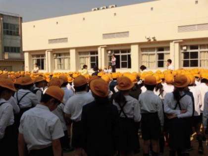 連日の雨のせいで、この日が今年度初めての朝礼となりました。