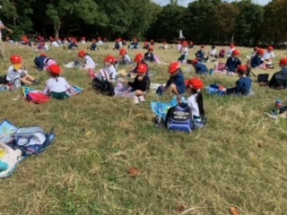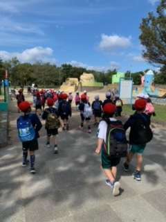 コロナ禍で春の遠足は実施できなかったため、今年初めての遠足となりました。1年生の子どもたちは、諏訪小学校一番乗りの遠足です。