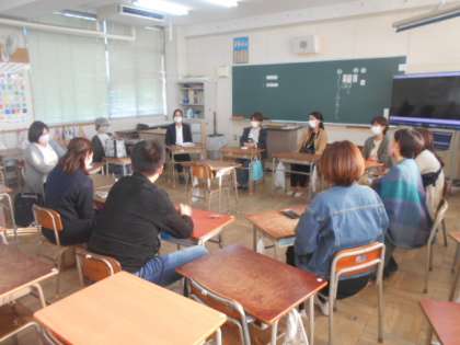 コロナ禍で実施できない状況が続いていましたが、学級PTA(学級懇談会)を今年初めて行うことができました。PTA指名委員候補選出会議の後、PTA役員さんが中心となって作成してくださった運動会の動画を各教室で観ました。その後、学級の様子や子どもたちの様子について担任・保護者のみなさんで共有できたのではないかと思います。