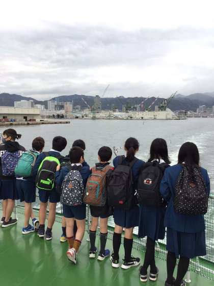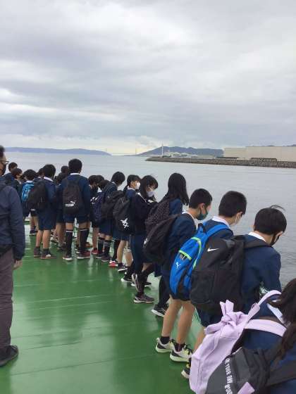 クルーズ体験では、係の人の話をしっかりと返事しながら聞く6年生を、カモメ達も大歓迎です。