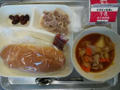 ★パン ★いちごジャム ★牛乳 ★豚肉のガーリック焼き ★ケチャップ煮 ★うずら豆のグラッセ
