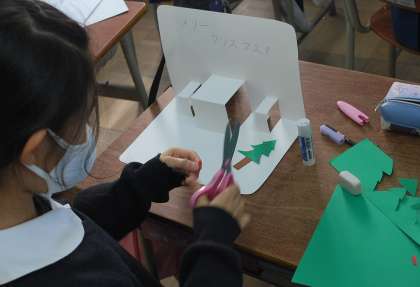 4年生は図画工作科で「飛び出すハッピーカード」の学習に取り組んでいます。