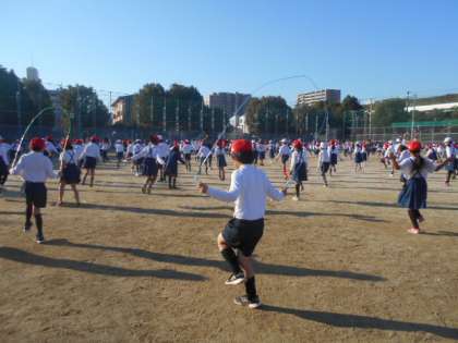 今日は、1〜3年生でなわとび集会がありました。前回し⇒後ろ回し⇒片足⇒かけ足⇒後ろかけ足跳びと順に挑戦しました。どの子も、自分の力、ペースでがんばっていました。運動委員会の人たちが、準備体操や跳び方のお手本をしてくれていました。できる技が増えてくると楽しくなります。練習がんばってね!