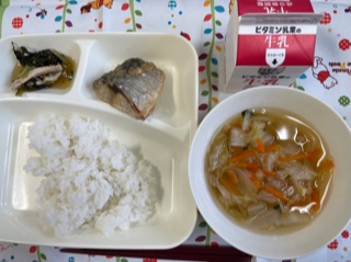 ★ごはん ★牛乳 ★さばのみぞれかけ ★すまし汁 ★こまつなの煮びたし