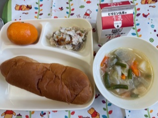 ★こくとうパン ★牛乳 ★鶏肉とじゃがいものスープ煮 ★きのこのドリア ★みかん
