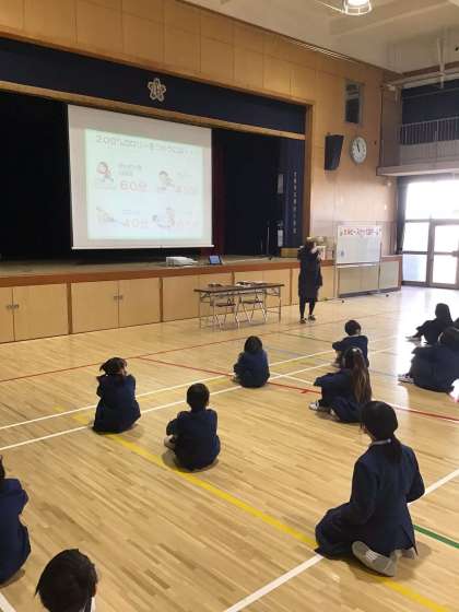 おやつの食べ方についての注意や、賞味期限についてのお話など、クイズ形式を交えて楽しく学ぶことができました。ぜひお家でも実践できるよう、お話を聞いてあげてください。