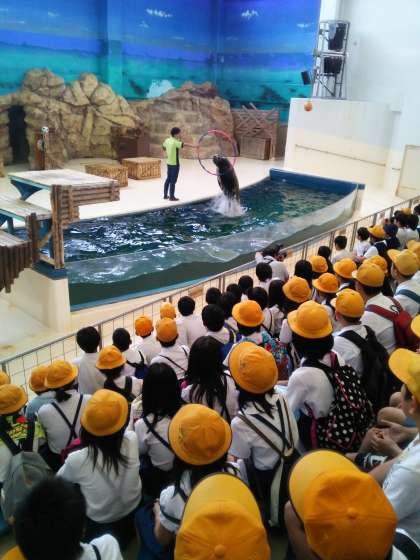 アシカショー 諏訪の子たちが前に陣取りました。
