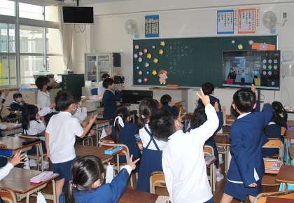 オンラインでの開催となりましたが、教室では代表委員の児童の話や校長先生の話を聞いたり、ジャンボじゃんけんで盛り上がったりしていました。
