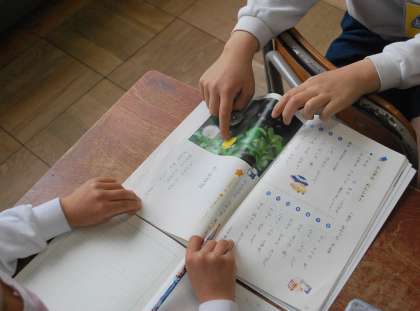 教室をのぞいた時には、たんぽぽについて知っていることをご近所さんと話しているところでした。