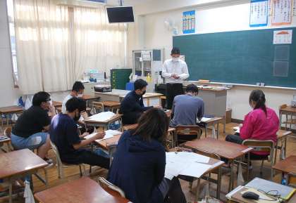 教員同士で明日以降の指導に活かせるように、自分の専門とすることや得意なことを、伝えたり、一緒に考えたりする研修会を行いました。
