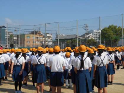 5・6年生の児童は、話をする人にしっかりとおへそを向けて、真剣に聞いていました。