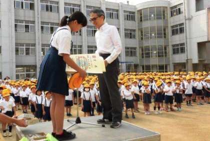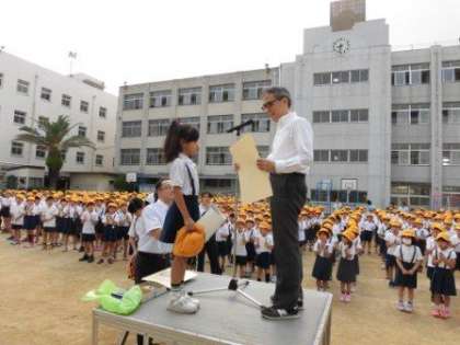 スポーツチャンバラ大会で好成績をおさめた児童の表彰や、