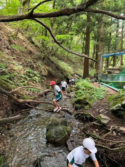 びっくりするほど冷たい水と、普段なら歩くことのない沢の道に、大歓声をあげながら何度も挑戦しました。