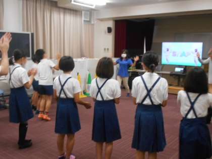 本校のCーNETの先生に加え、他3名のCーNETの先生が来校し、ダンスやゲームを取り入れ、楽しく活動しながら英語を聞いたり、会話をしたりしました。