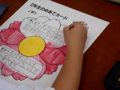 2年生は、2学期のめあてをいっしょうけんめに考えていました。