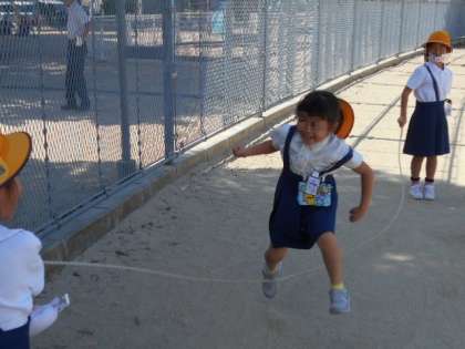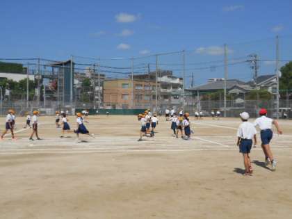 「休み時間にグランドで出て遊ぶことができます」という校内放送が流れると、みんな大喜び。1年生の教室からも大きな歓声が聞こえました。