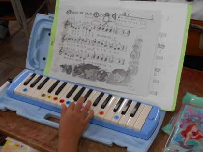 最初は、「これ、むずかしい〜」と言う児童も少なくありませんでしたが、授業が終わる頃には、上手に演奏できるようになってきました。