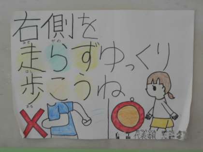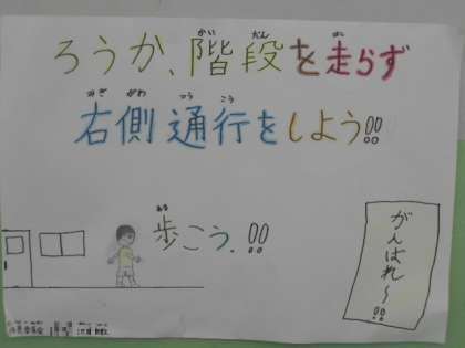また、みんなが安全に気を付けて生活ができるよう、代表委員の児童が注意喚起のポスターを掲示してくれています。