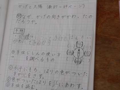 「なぜ、かげの向きが変わったのだろうか」という学習でした。