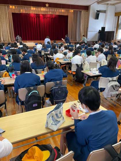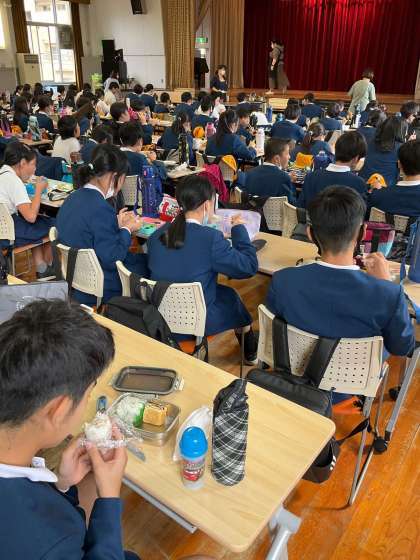 突然のにわか雨に、念のため昼食は、そのまま講堂でとらせていただきました。