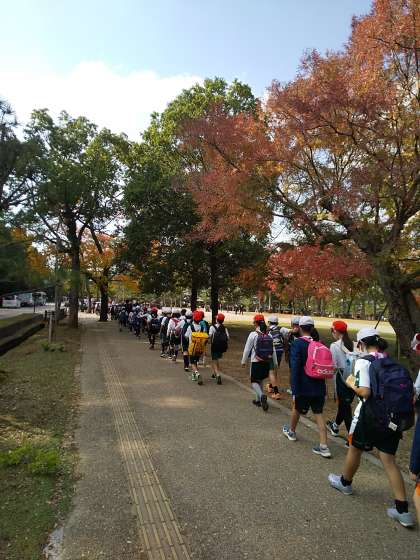 たくさん遊びました。近鉄奈良駅に向かい、諏訪小学校に帰ります。
