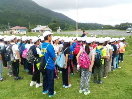 雨が上がったので宿舎の前の広場で入舍式!! これから登山です。
