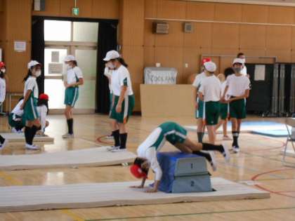 講堂での体育は「マット運動」です。
