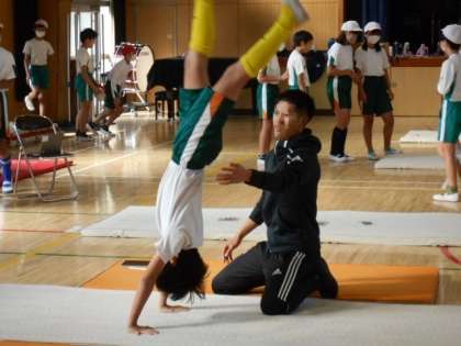 友だちに自分の技を見てもらい、アドバイスをもらいながら取り組んでいました。