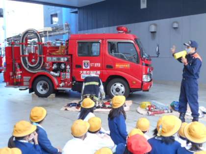 城東消防署の皆さんには、丁寧にやさしく、ユーモアも交えながら、いろいろなことを教えていただいたり、質問に答えたりしていただきました。本当にありがとうございました。