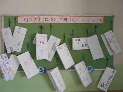 「和の文化を受け継ぐ」の学習で作ったリーフレットが掲示されていました。