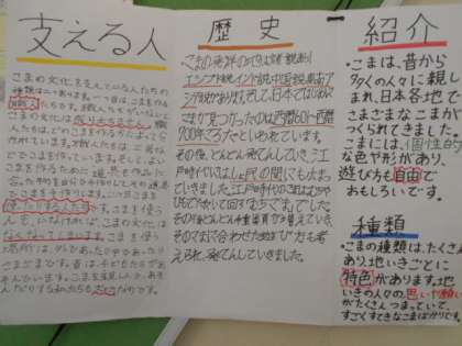「和食」「遊び」「家」「和紙」「日本茶」「祭り」等々、グループでテーマを決め、これまで調べ、まとめました。なかなかの出来栄えです。勉強になります。