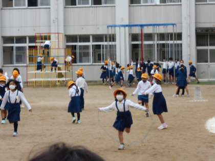 体育の授業や集会の影響からでしょうか、休み時間になわとびをする児童が増えてきています。
