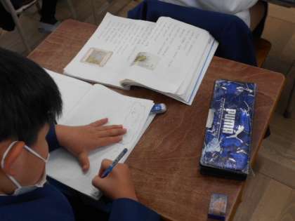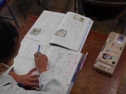 文を読んで登場人物の気持ちをいっしょうけんめいに考えていました。そのあと、ペアの友だちに自分の考えを伝える学習をしました。