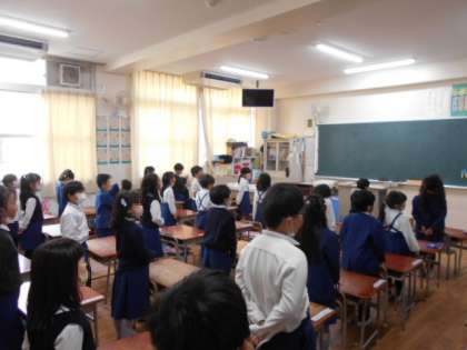 本来なら、運動場で全員がそろって行う予定でしたが、前日からの雨により運動場がぬかるんでいたため、放送による終業式となりました。
