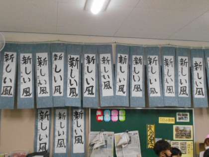 書いた後は作品を雲竜紙に貼り、教室に掲示しました。