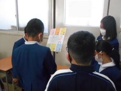 後半は、同じく前回1〜5年生で作成した色紙を、6年生にプレゼントする時間でした。