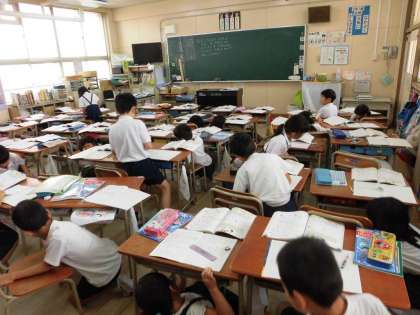防災行政無線での訓練放送に従い、地震や津波に対しての訓練行動を実施しました。