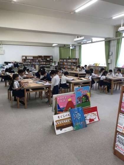 今日は金曜日なので学校司書の藤本先生が来られています。