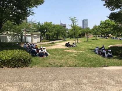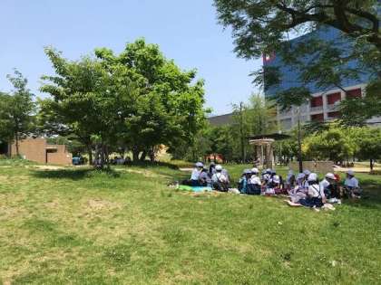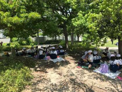 クラスで分かれてお弁当タイムです。