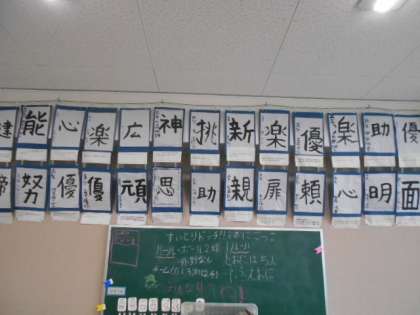 自分で選んだ一文字を書きました。どんな思いで選んだのか、児童それぞれの気持ちが伝わる素敵な作品です。