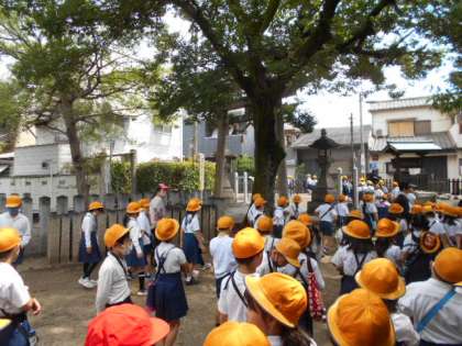 校区探検に行ってきました。自分たちが暮らしている校区の中には、たくさんのお店、お寺や神社があります。どんなお店や場所を見つけましたか?