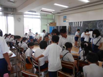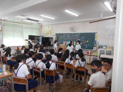 教室で安全に気を付けながら、お楽しみ会をする6年生です。