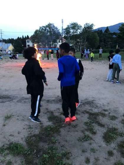 もう暗くなってきましたので、キャンプファイアーの様子を写真で送るのは最後です。