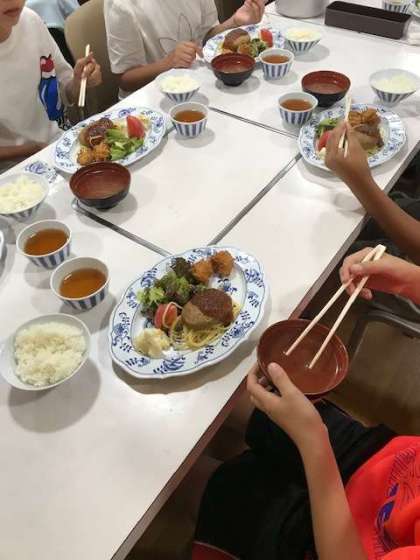 2日目の夕食のメニューはハンバーグと唐揚げです。